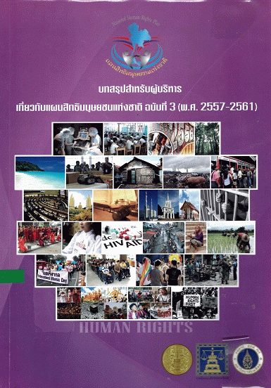 บทสรุปสำหรับผู้บริหารเกี่ยวกับแผนสิทธิมนุษยชนแห่งชาติ ฉบับที่ 3 ( พ.ศ. 2557- 2561) / กระทรวงยุติธรรม กรมคุ้มครองสิทธิและเสรีภาพ.