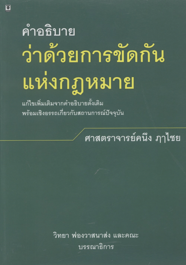 คำอธิบายว่าด้วยการขัดกันแห่งกฎหมาย : แก้ไขเพิ่มเติมจากคำอธิบายดั้งเดิม พร้อมเชิงอรรถเกี่ยวกับสถานการณ์ปัจจุบัน / คนึง ฦาไชย ; วิทยา ฟองวาสนาส่ง และคณะ, บรรณาธิการ.