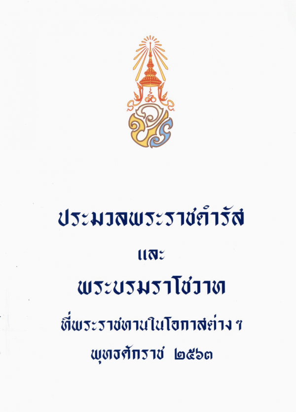 ประมวลพระราชดำรัสและพระบรมราโชวาทที่พระราชทานในโอกาสต่าง ๆ พุทธศักราช 2563 / กรมราชเลขานุการในพระองค์ สำนักพระราชวัง.