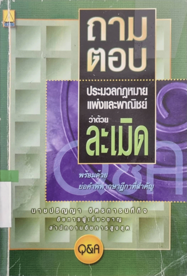 ถาม-ตอบ ประมวลกฎหมายแพ่งและพาณิชย์ ว่าด้วยละเมิด พร้อมด้วยย่อคำพิพากษาฎีกาที่สำคัญ / ปริญญา จิตรการนทีกิจ.