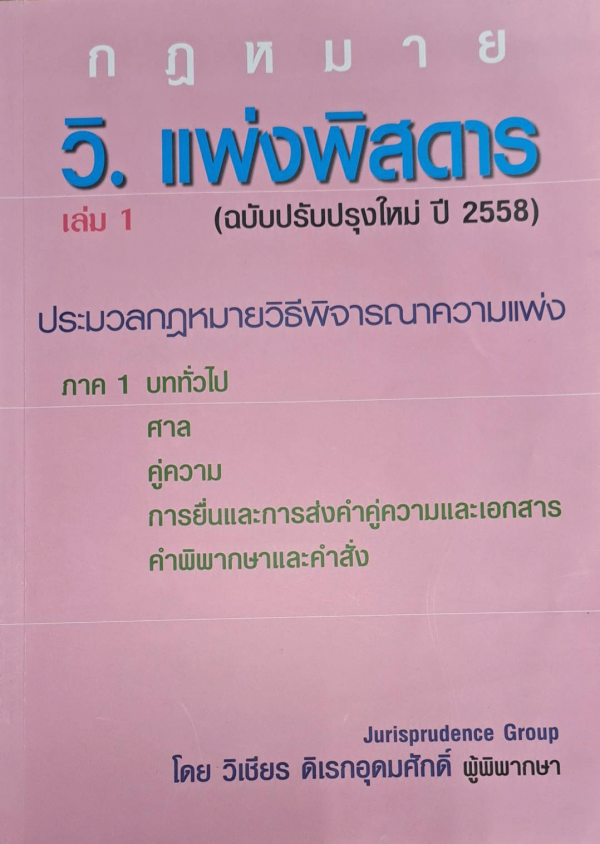 วิ.แพ่งพิสดาร เล่ม 1 (ฉบับปรับปรุงใหม่ ปี 2558) / Jurisprudence Group โดย วิเชียร ดิเรกอุดมศักดิ์.