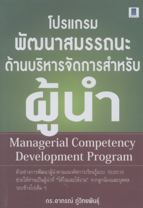โปรแกรมพัฒนาสมรรถนะด้านบริหารจัดการสำหรับผู้นำ = Managerial Competency Development Program / อาภรณ์ ภู่วิทยพันธุ์.