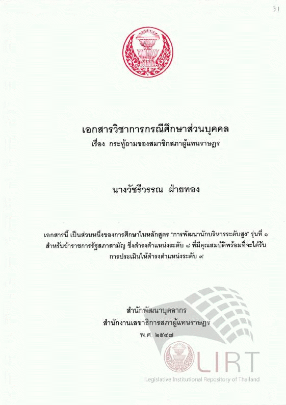 Publisher: กรุงเทพฯ : สำนักงานเลขาธิการสภาผู้แทนราษฎร, 2547