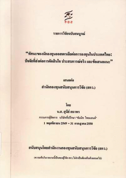Publisher: กรุงเทพมหานคร : สำนักงานคณะกรรมการวิจัยแห่งชาติ, 2550