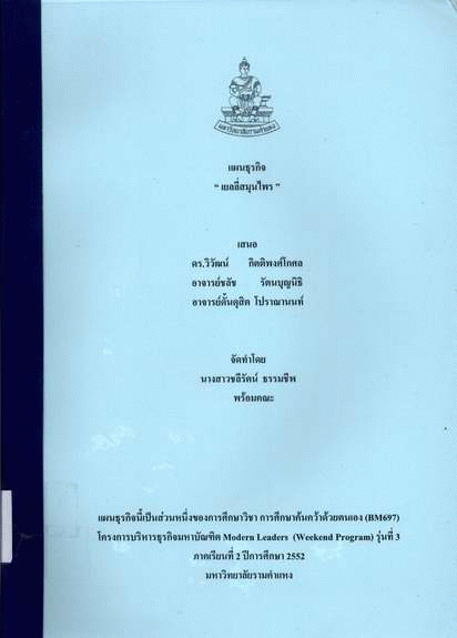 แผนธุรกิจ "เยลลี่สมุนไพร" / ชลีรัตน์ ธรรมชีพ. by