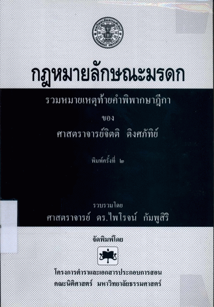 Publisher: กรุงเทพฯ : โครงการตำราและเอกสารประกอบการสอน คณะนิติศาสตร์ มหาวิทยาลัยธรรมศาสตร์, 2554