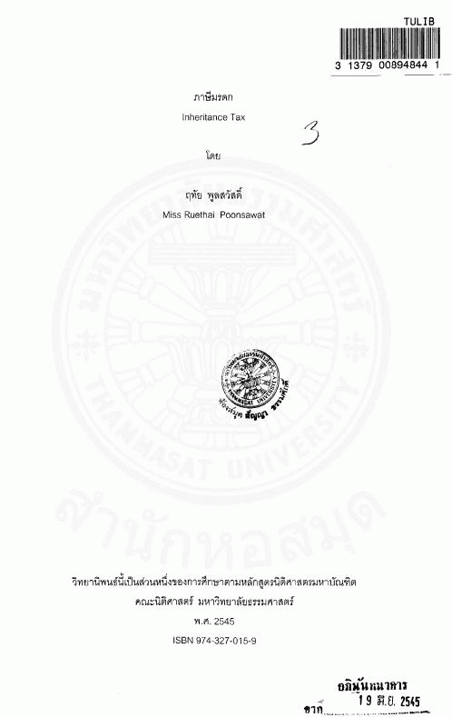 Publisher: กรุงเทพฯ : คณะนิติศาสตร์ มหาวิทยาลัยธรรมศาสตร์, 2545