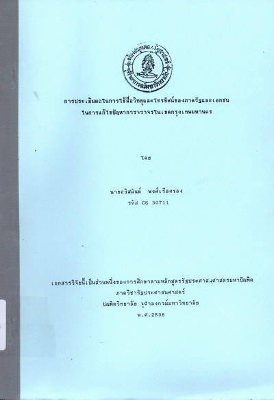 Publisher: กรุงเทพฯ : มูลนิธิ 30 ปี คณะรัฐประศาสนศาสตร์ สถาบันบัณฑิตพัฒนบริหารศาสตร์, 2538