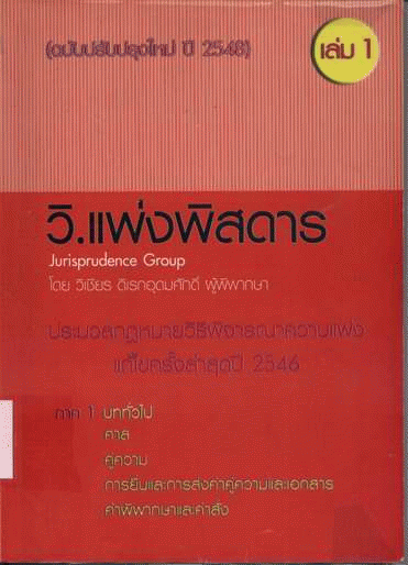 Other title: - วิ.แพ่งพิสดาร เล่ม 1 ฉบับปรับปรุงใหม่ ปี 2548 ประมวลกฎหมายวิธีพิจารณาความแพ่ง แก้ไขครั้งล่าสุดปี 2546 ภาค 1 บททั่วไป ศาล คู่ความ การยื่นและการส่งคำคู่ความและเอกสาร คำพิพากษาและคำสั่ง.
