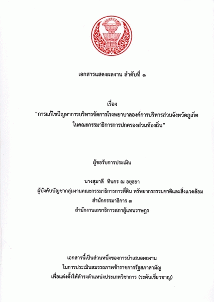 - ชุดวิจัย "การสังเคราะห์ข้อเสนอ การกระจายอำนาจและการปกครองท้องถิ่นเพื่อการปฏิรูปประเทศไทย" (8)