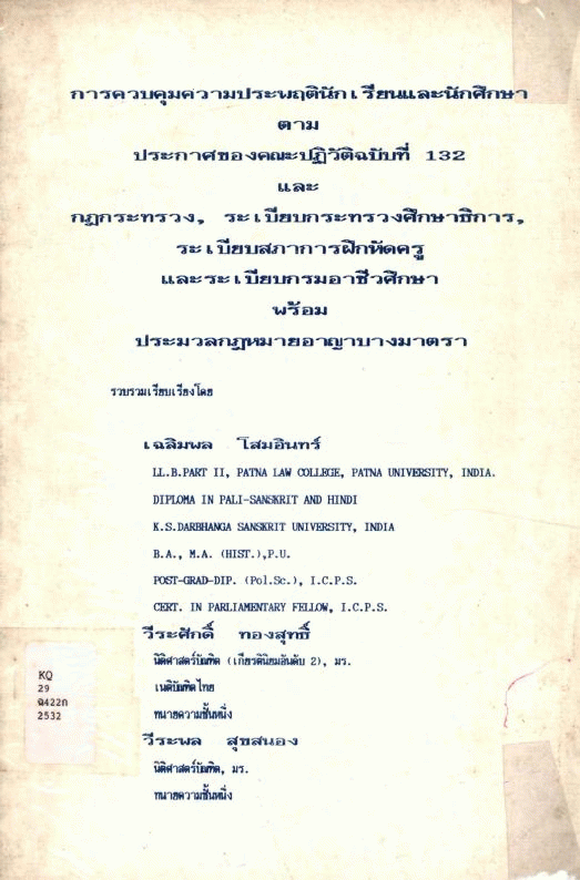 Publisher: กรุงเทพฯ : นิติบรรณการ, 2532