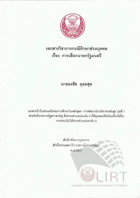 การเลือกนายกรัฐมนตรี / ธงชัย ดุลยสุข by