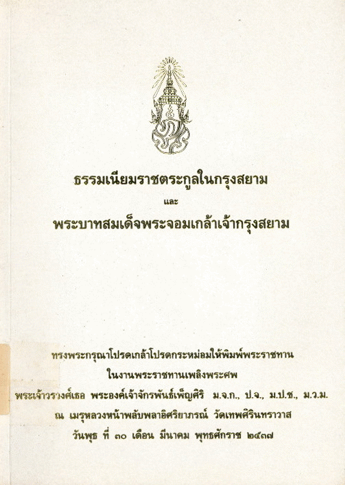 ธรรมเนียมราชตระกูลในกรุงสยาม.