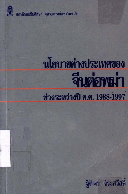 นโยบายต่างประเทศของจีนต่อพม่า : ช่วงระหว่างปี ค.ศ.1988-1997 by