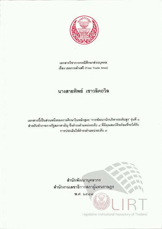 เขตการค้าเสรี (Free Trade Area) / สายทิพย์ เชาวลิตถวิล. by