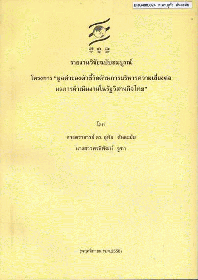 การบริหารความเสี่ยง / นิรภัย จันทร์สวัสดิ์. by