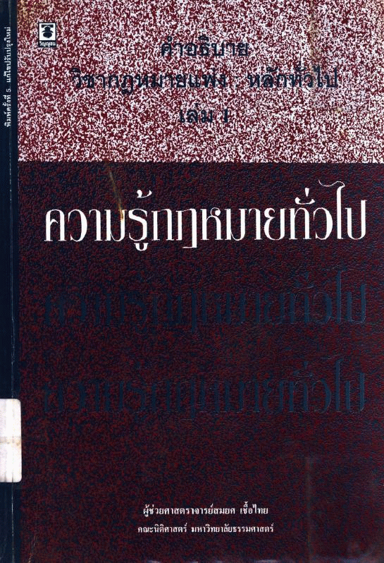 Publisher: กรุงเทพฯ : โครงการตำราและเอกสารประกอบการสอน คณะนิติศาสตร์ มหาวิทยาลัยธรรมศาสตร์, 2553
