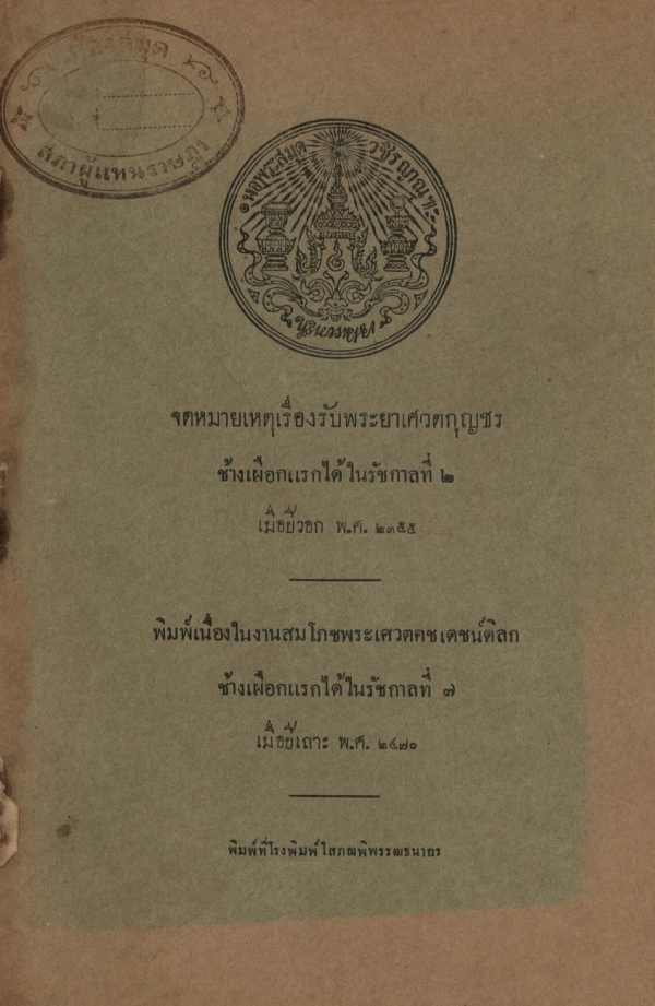 Publisher: กรุงเทพฯ : กองวรรณคดีและประวัติศาสตร์, ม.ป.ป