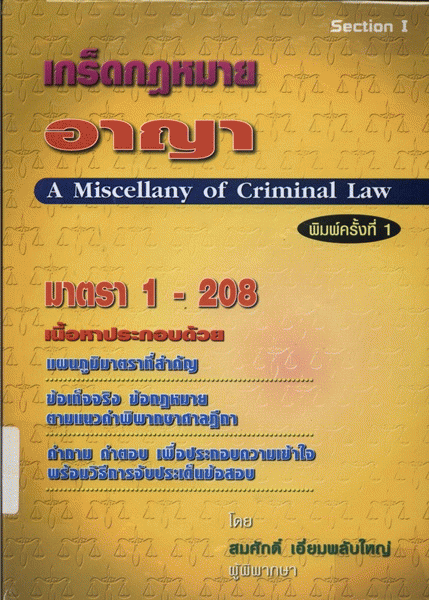 เกร็ดกฎหมายอาญา มาตรา 1-208 / สมศักดิ์ เอี่ยมพลับใหญ่. by