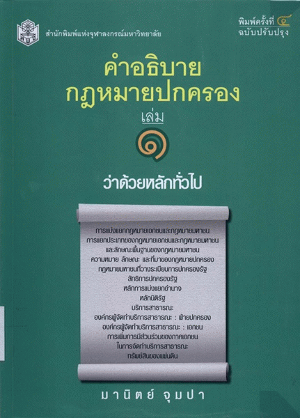 คำอธิบายกฎหมายปกครอง เล่ม 1 ว่าด้วยหลักทั่วไป / มานิตย์ จุมปา. by