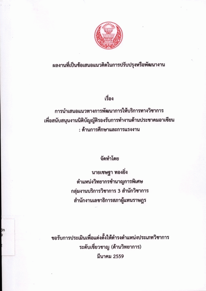 การวัดผลการดำเนินงาน เพื่อไปสู่การเป็นประชาคมเศรษฐกิจอาเซียน.