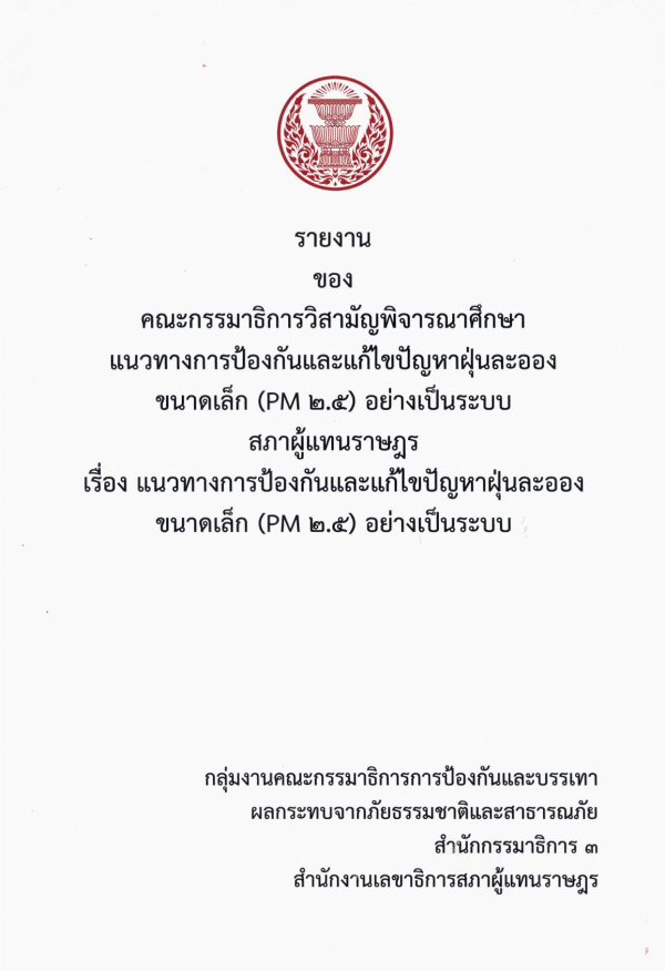 - คณะกรรมาธิการวิสามัญพิจารณาศึกษาแนวทางการป้องกันและแก้ไขปัญหาฝุ่นละออง ขนาดเล็ก (PM 2.5) อย่างเป็นระบบ สภาผู้แทนราษฎร (1)