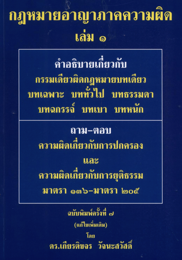 กฎหมายอาญา ภาคความผิด เล่ม 1 / เกียรติขจร วัจนะสวัสดิ์. by