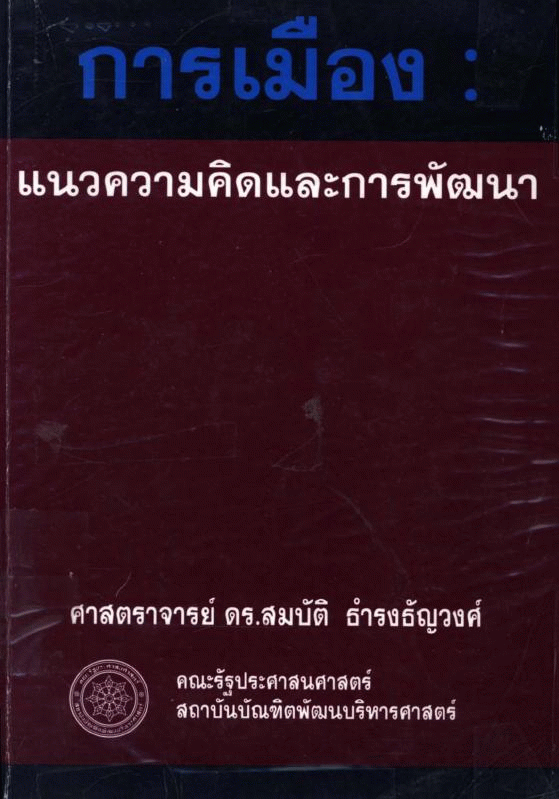 Publisher: กรุงเทพฯ : โครงการเอกสารและตำรา คณะรัฐประศาสนศาสตร์ สถาบันบัณฑิตพัฒนบริหารศาสตร์, 2541