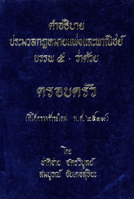 Other title: - คำอธิบายประมวลกฎหมายแพ่งและพาณิชย์ บรรพ 5 ว่าด้วยครอบครัว แก้ไขเพิ่มเติมตามพระราชบัญญัติแก้ไขเพิ่มเติมประมวลกฎหมายแพ่งและพาณิชย์ (ฉบับที่ 19) พ.ศ. 2551.