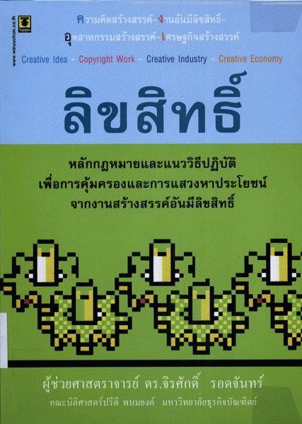 Other title: - ลักษณะของกฎหมายทรัพย์สินทางปัญญา พื้นฐานความรู้ทั่วไป ลิขสิทธิ์ เครื่องหมายการค้า ความลับทางการค้า แบบผังภูมิของวงจรรวม สิ่งบ่งชี้ทางภูมิศาสตร์ พันธ์ุพืชใหม่.