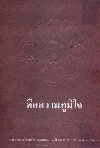 Other title: - คือความภูมิใจ รวมบทความวิชาการในวาระครบรอง 60 ปี ศาสตราจารย์ ดร.ฉัตรทิพย์ นาถสุภา.