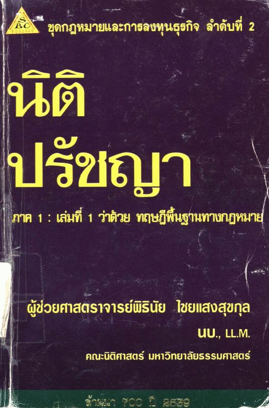 Publisher: กรุงเทพฯ : โครงการตำราและเอกสารประกอบการสอน คณะนิติศาสตร์ มหาวิทยาลัยธรรมศาสตร์, 2555