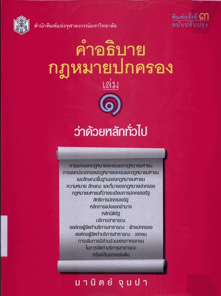 คำอธิบายกฎหมายปกครอง เล่ม 1 ว่าด้วยหลักทั่วไป / มานิตย์ จุมปา. by